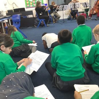Year 4 enjoyed listening to the Apollo string quartet, playing music by Shostakovich and Mendelsohn. They described and noted down how they felt hearing the different tunes and also had the chance to request songs to be composed! They look forward to the final Apollo concert, taking place at the end of this month at Hackney Empire.