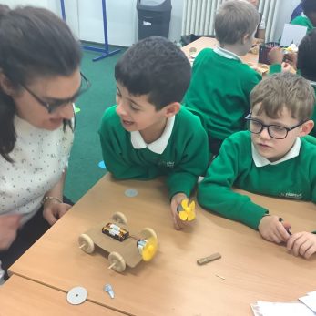 For DT day, Year 2 constructed toy cars using wheels, cardboard, axle and propellers. They used their creativity to personalise their cars and create appropriate waterproof roofs for them.