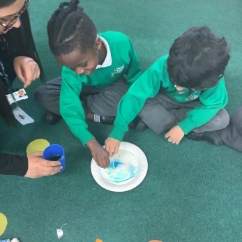 EYFS celebrated Science Day with a fun experiment called, ‘The Magic Moving Milk’. This involved using milk, food colouring and washing up liquid to make the milk spread, creating beautiful array of colours.