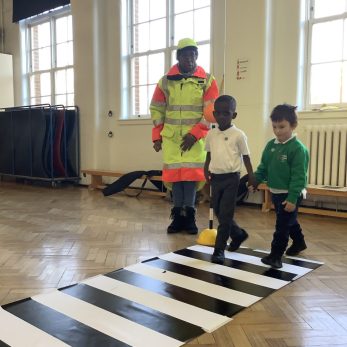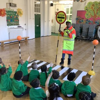 EYFS had a special visit from Hackney Road Safety Officers. They learnt the important tip of ‘stop’, ‘look’, ‘listen’ and ‘think’ rule prior to crossing as well as many more road safety rules!