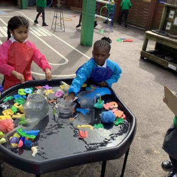 EYFS have been investigating capacity in Maths. They used different containers to see which one held more water and shared their results using mathematical vocabulary of full, empty and half full.