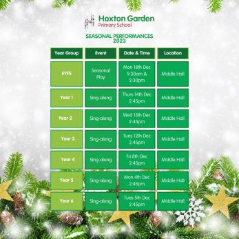 Reminder; Parents/Carers, you are all welcome to join us for this year’s festive seasonal performances starting this week. Please check the dates for your child’s year group and feel free to come along! We look forward to welcoming you!