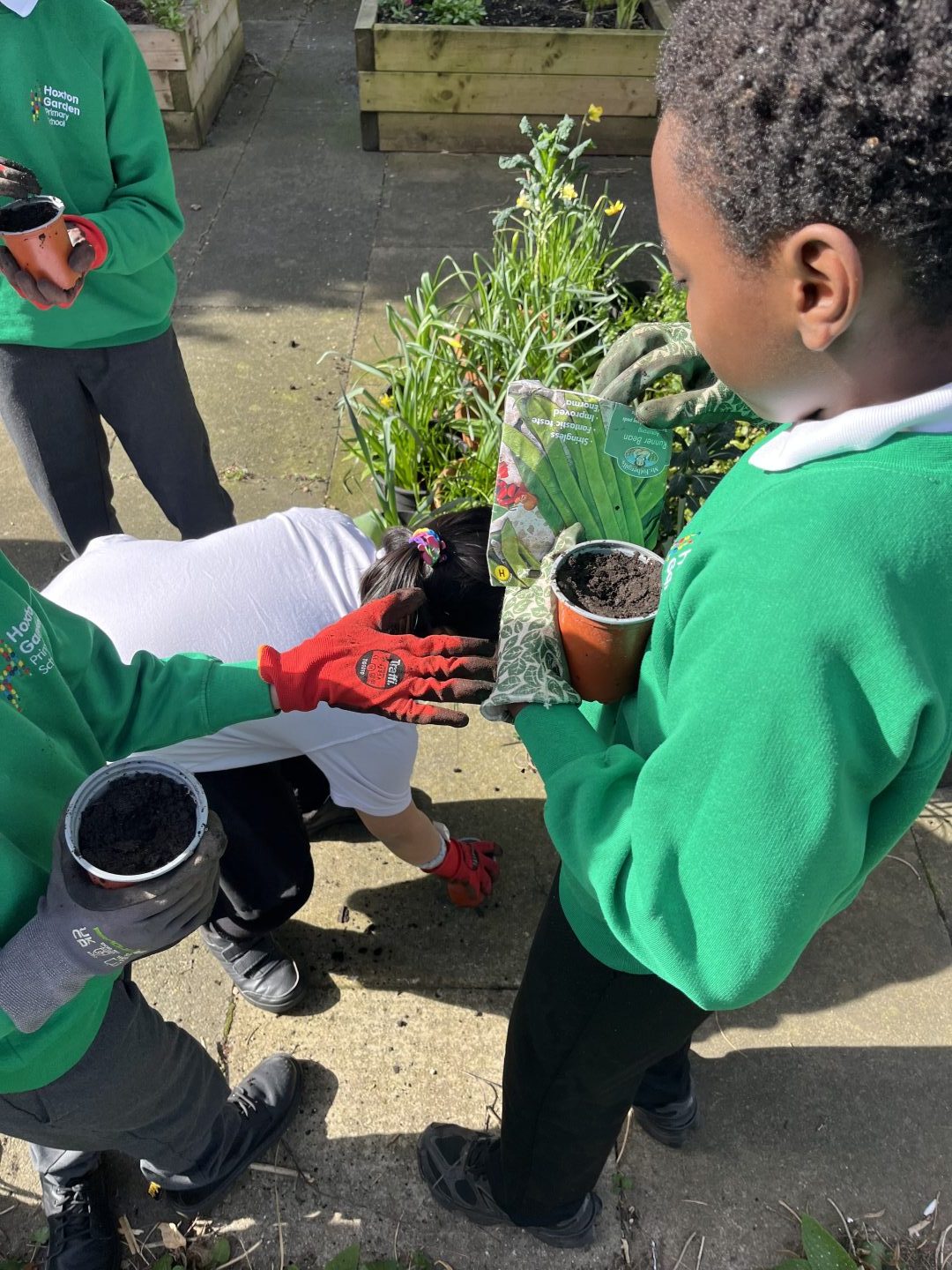 Spring has arrived, and our head gardeners have been hard at work preparing the garden for new plants. At the same time, they have been setting up our school entry into the national schools potato growing competition, carefully tending everything and hoping for a winning harvest.