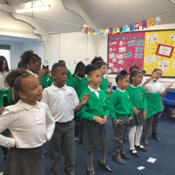 The KS2 choir session was very lively. Children enjoyed warming up their voices by singing through the ‘Mama Bella’ round. By the end, they were all singing and dancing to ‘It’s going to be a great day’ and ‘Fireworks’.