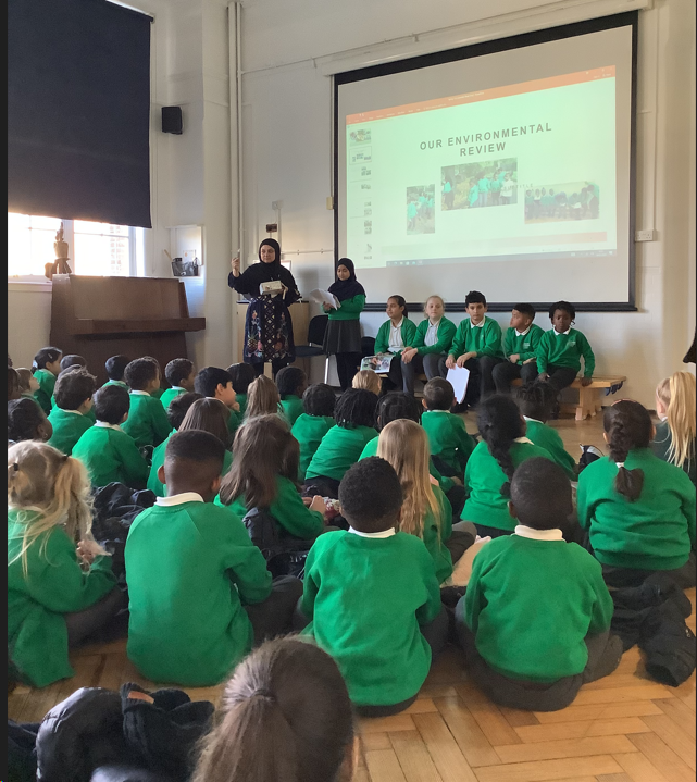 This year the Green Team had a strong focus on waste reduction and recycling. We had a few visits from Kelly, Hackney Council’s Environmental Officer who provided assemblies and workshops aiming to raise awareness on these matters. She spoke to the children about the correct way to use recycling bins and informed them about what can be put into the waste buckets in the lunch hall. In addition, she gave some amazing facts about recycling and how recycling can save the world! A few other initiatives the Green Team carried out included cross-site meetings to brainstorm eco-project ideas with their peers from Orchard and Southwold.