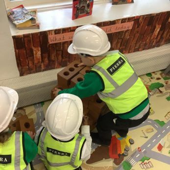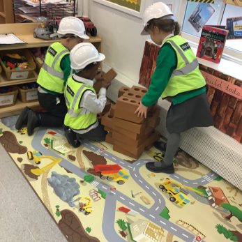Reception children loved dressing up and looking just like the builders working hard to restore our school, thanks to Pierra for their kind donation of hard hats and hi-vis jackets.