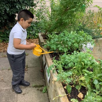 Year 1 enjoyed looking at the life-cycle of a runner bean. They used their watering cans to water all of the plants in the school garden and then ended their hard work with taste test of fresh peas.