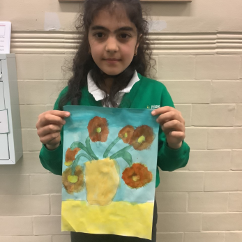 Year 2 have been studying the work of Vincent Van Gogh in Art. They have been learning all about his style of painting, developing their painting skills using different styles of brush strokes. They also explored colour mixing to create lighter and darker shades of the same colour. Putting their new skills together, they created their own version of Van Gogh’s Sunflower painting.