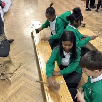 Year 5 enjoyed their second gardening workshop where they learnt all about flax. They carefully followed the guidance of their teacher to firstly, break down the flax stem and make it soft, they then used scrutching to remove the outer layer of their flax, next they brushed the fibre to make it soft and finally, they spun their material to make a twine.