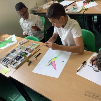 Year 6 have been creating wildlife portraits in Art. They perfected their blending techniques to represent the animals realistically, drawing animals such as hummingbirds, manatees and koalas.