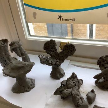 Year 6 have been practicing their sculpting skills in Art. Using inspiration of the work produced by the Japanese artist, Yayoi Kasuma, they moulded clay into flowers, mushrooms and organic shapes. using tools to carve dots into them as part of her signature aesthetic.
